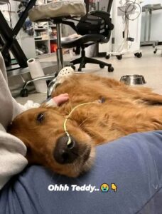 At one point, the vet explained that surgery might be necessary if his condition didn’t improve. Hearing that possibility broke our hearts. But Teddy is strong. With medication, rest, and nonstop care, his condition slowly began to stabilize. Small victories—drinking water, lifting his head, wagging his tail—meant everything to us.
