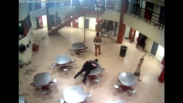 he Oklahoma City Police Department released a video Friday showing inmates drag, beat and stab a jailer before police shot and killed one who was holding a homemade knife to the jailer’s neck.