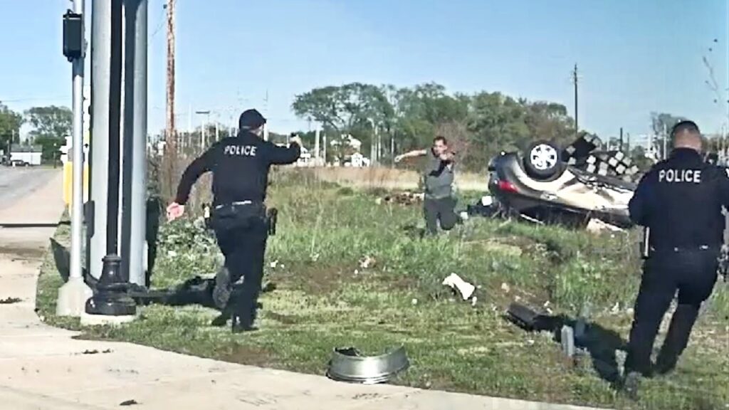 The bodycam video—released on Tuesday—shows officers during a traffic stop in Hegewisch trying to get the suspect to exit a vehicle. When the man doesn’t comply, officers then break the car’s driveside window, which is when he speeds off.